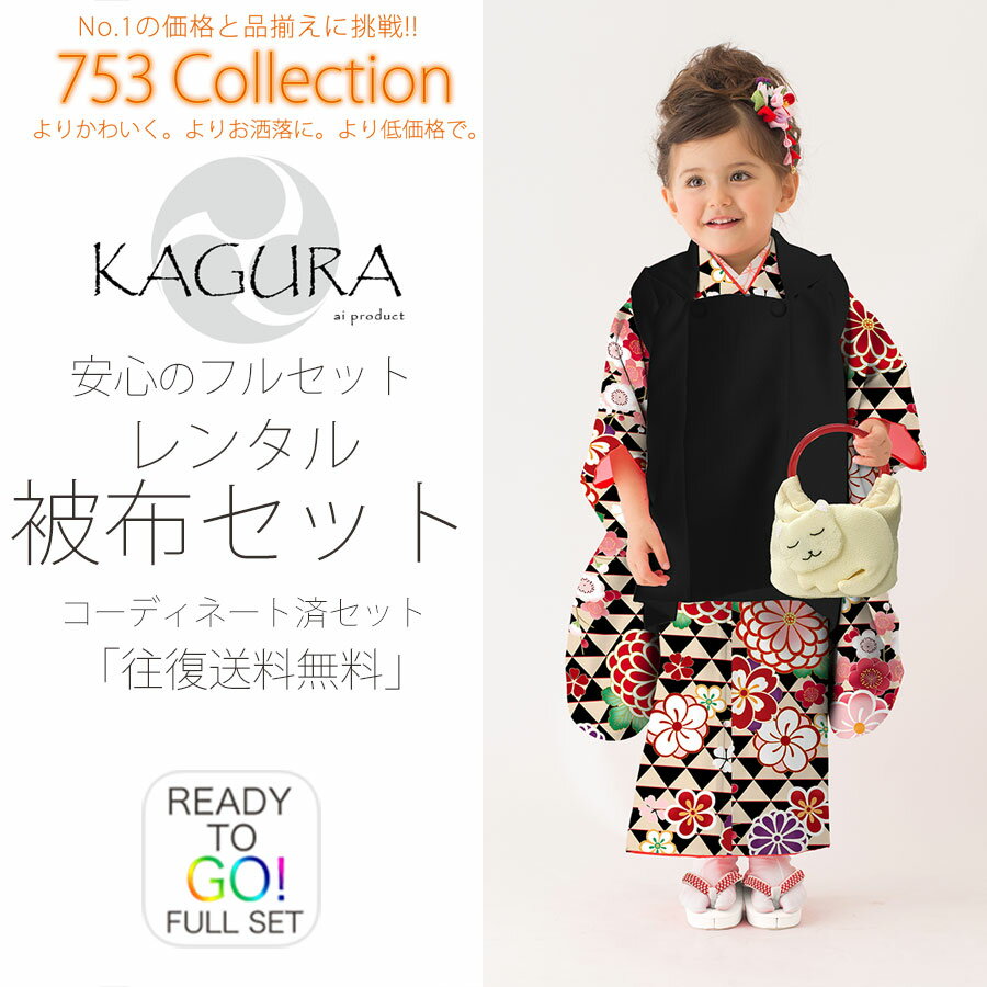 KAGURA 式部浪漫 ブランド レンタル 被布コート フルセット【3歳 三歳 貸衣装 七五三】子供 女児 ひな祭り お正月【往復送料無料】古典 黒 ウロコ