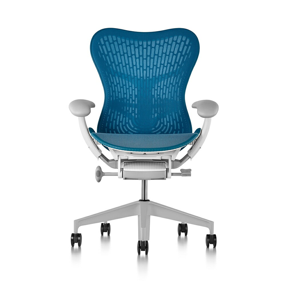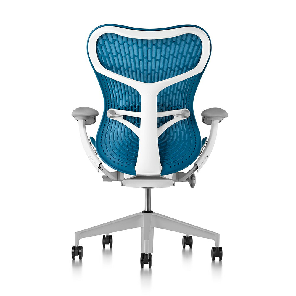 [HermanMiller]ミラ2チェア(Mirra2 Chairs)バタフライバック/座面シート・背もたれカラー:ダークターコイズ/ベース:フォグ/フレーム:スタジオホワイト/アームパッド:フォグ/キャスター:BBキャスター(標準仕様)【梱包材を無料で処分】【家財便配送】EGP